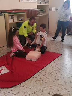 Los peques se han marchado al cole porque dos trabajadores del 112 han venido a explicarnos cómo hacer la reanimación. ¡Qué bien nos lo han explicado!